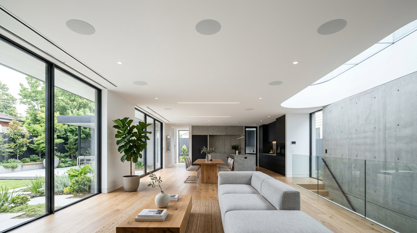 Comment proposer la domotique et l'audio comme valeur ajoutée dans vos projets d'architecture d'intérieur au Maroc ? Interrupteurs design KNX (Zennio, Ekinex), enceintes invisibles, intégration technique. Le guide du partenariat architecte + intégrateur.