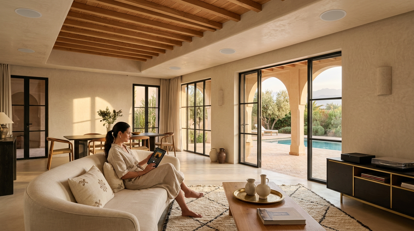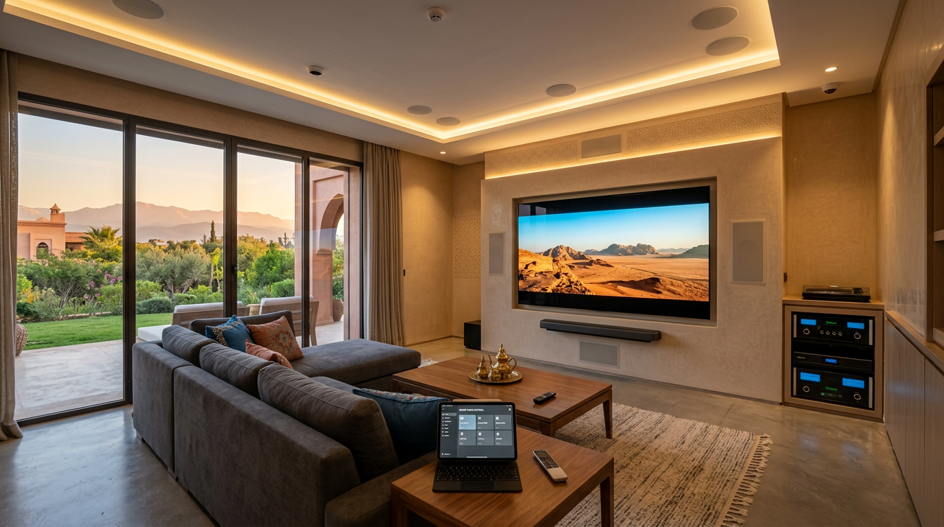 Construire ou rénover une villa au Maroc en 2026 ? Voici le guide complet pour intégrer audio multiroom, home cinéma, domotique et vidéo conférence dans un projet cohérent. De l'architecture réseau au choix des produits, en passant par le budget et les erreurs à éviter.